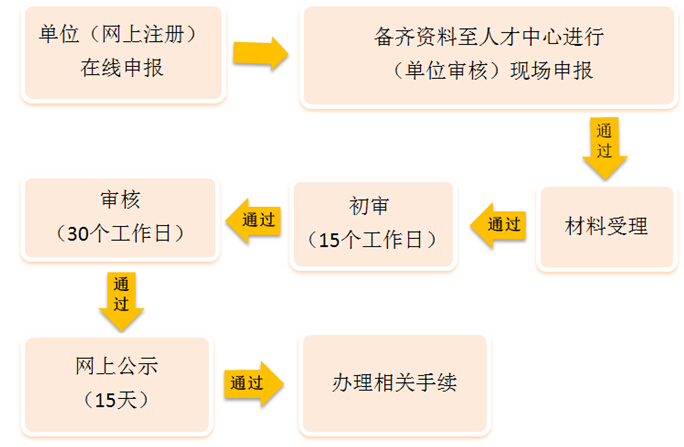 5、市人才服務(wù)中心區(qū)、縣人力資源和社會(huì)保障部門在正式受理后的15個(gè)工作日內(nèi)完成初審。